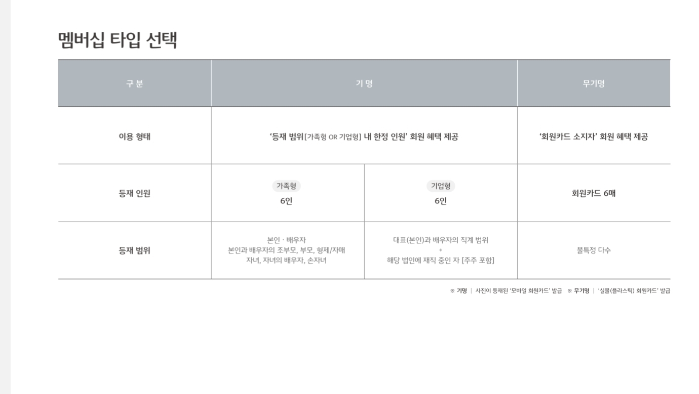 ✅️기명(가족형/기업형): 지정된 6인에게 혜택 제공 (모바일 카드 발급)