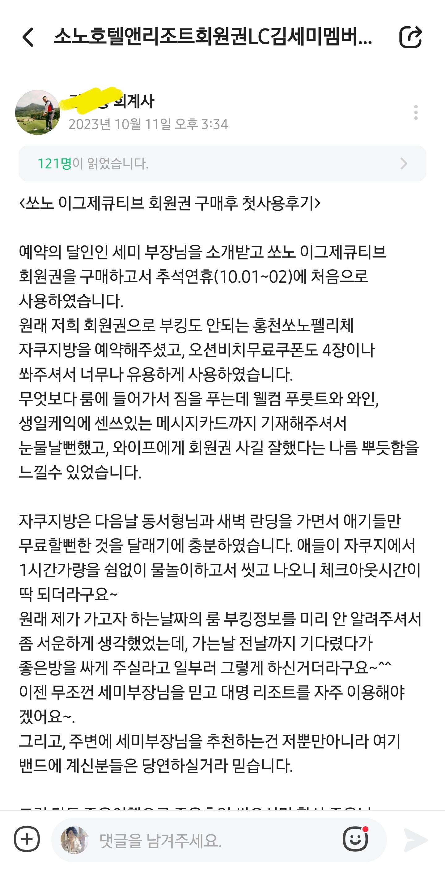 | 소노리움 회원권 분양 | 법인-개인 맞춤 혜택 안내(소노호텔앤리조트 공식 김세미부장) (3) | 2025.09.06 |